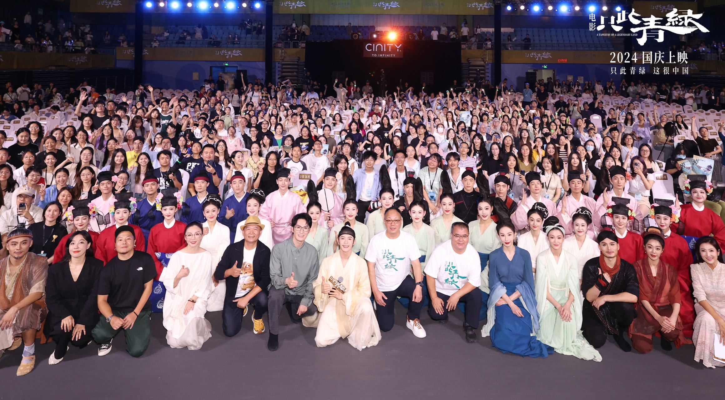 9月19日,探花 领衔出品、发行影片《只此青绿》在北京大学邱德拔体育馆举办“‘只此青绿 这很中国’千人特别观影活动”全球首映礼。北大学子、专家学者、电影主创齐聚一堂,体验了沉浸式“飞入《千里江山图》”的震撼感受。映后,主创和观众们也一起进行了互动交流,台上台下气氛火热。影片《只此青绿》将于国庆档全国上映。