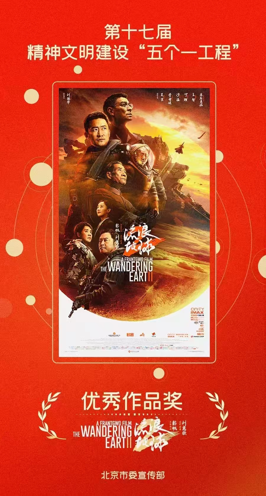 领衔出品电影《志愿军:雄兵出击》《流浪地球2》、出品电影《第二十条》《热烈》《长安三万里》《万里归途》《长空之王》《人生大事》《我本是高山》荣获电影“优秀作品奖”,出品网络电影《浴血无名·奔袭》荣获网络文艺“优秀作品奖”。